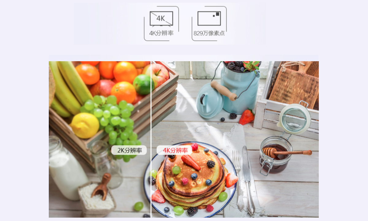 4K高清画质高速引擎处理,可支持3840*2160像素点,远超800万像素,比1920*1080规格更清晰
