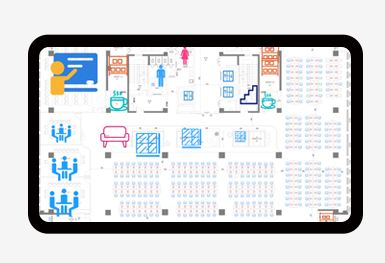 支持智能搜索,支持交互式平面图方式预定,支持单人及团队预定,支持工位签到、延时、取消等操作。