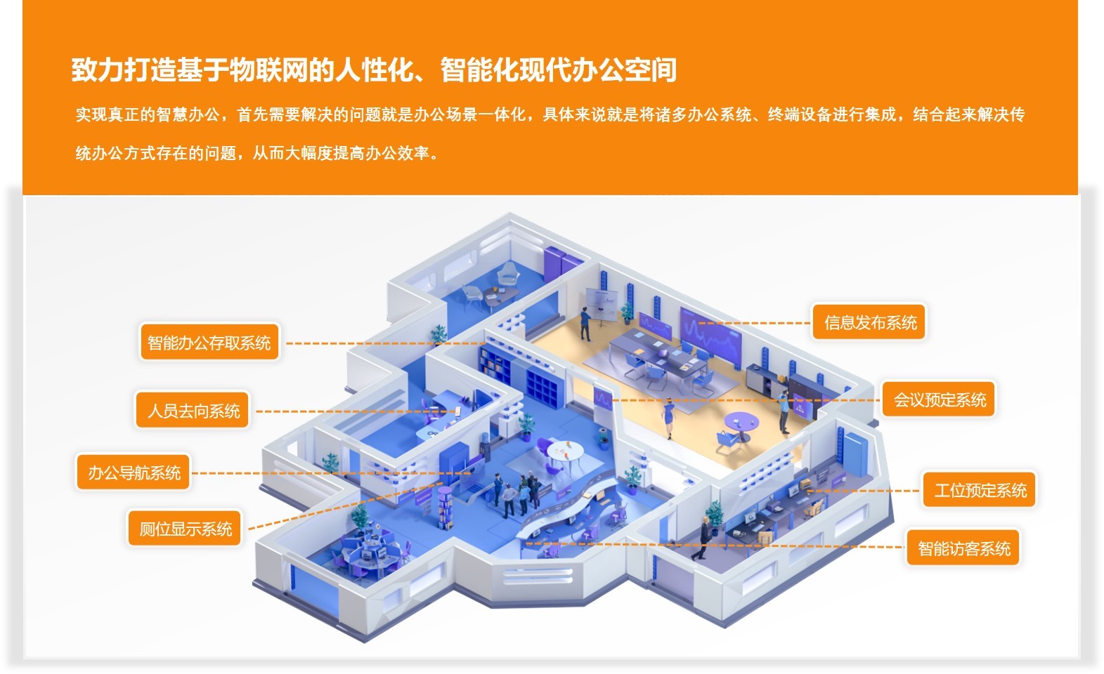 卓振传媒资源网智慧办公产品包括会议预约系统、访客系统、信息发布系统、办公导航系统、电子水牌系统、人员去向系统、厕位显示系统、工位预约管理系统、智能办公存取柜系统